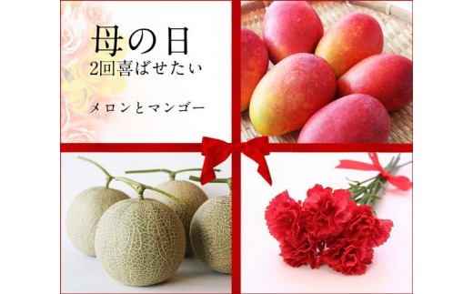 ★今年はお母さんを2回喜ばせませんか? 母の日の喜びを2倍にするフルーツギフトを作りました! 母の日はもちろん、7月頃にもう一度プレゼントが届く驚きのスペシャルプラン。 2回目は宮古島のマンゴー。誰もが喜ぶ贈り物です!両方とも契約農家さんの品でギフトに安心。 【母の日メロンについて】 高級品の条件『美しい網目』と『糖度』 □ 糖度14度以上保証 □ 網目も細かく美しいメロン □ 一枝に一玉のみの栽培方法で美味しさが濃縮 □ 水っぽさがない、甘くて濃厚な味のメロン 宮古島の土壌はメロン栽培に適しており、見た目、糖度、味、どれをとってもクオリティの高いメロンが採れるのです。 『Mother’s Day』の赤いタグ、飾り用のミニカーネーション付き(約11センチ) メロン専用の化粧箱入りです。 《 発送時期/母の日メロン 》 1)2026/4/25迄のご注文分は、5/1~母の日(5/10)までの間に到着予定。(配送によって多少前後します) 2)2026/4/26以降のご注文分に関しては5/10以降になる場合があります。 3)メロンは生もののため、指定日はお受け出来ません。 【夏マンゴーについて】 贈答品にパーフェクトな高級マンゴー 《 発送時期/夏マンゴー 》 2026年6月中旬~7月中旬頃 □ 糖度14度超 □ 色艶を誇る、見た目にも美しいマンゴー □ 農薬をほぼ使わない自然栽培なので「香り」が濃厚 クオリティが高く贈った方に歓喜されるマンゴーです。 ご自宅用に毎年購入されるリピートのお客様も沢山います。 【生産地:宮古島市】 ※化粧箱の柄は、変更になる場合があります。 ※天候の影響で収穫量・収穫時期が遅れた場合、発送が遅れる場合があります。 事業者名:琉球マルシェ 連絡先:info@r-marche.com