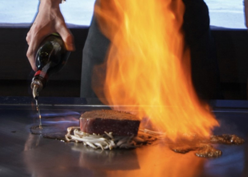 宮古島でも大変希少な宮古牛サーロインのお肉を目の前で調理しご提供。