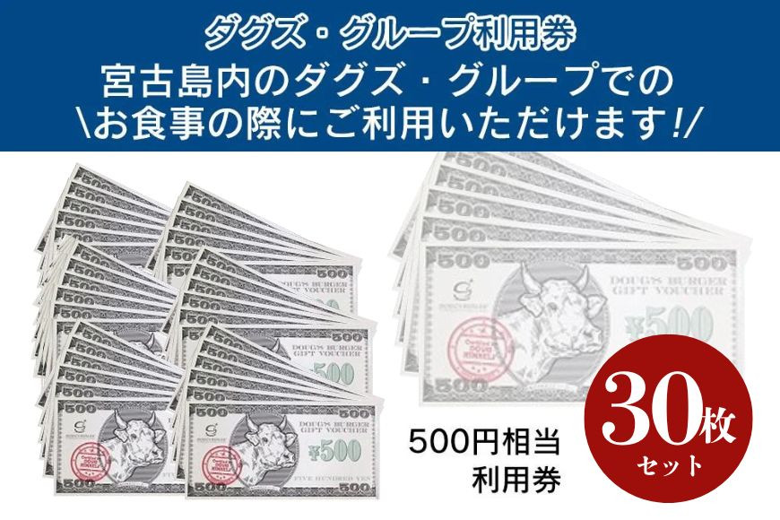 【人気】宮古島でお食事の際にご利用いただける利用券♪ BM005 ダグズ・グループお食事券(15,000円分)