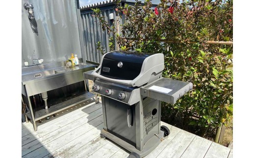 最大5名まで宿泊可能、広々ダブルベッド2台、プライベートデッキにはアウトバスとBBQ設備を完備!