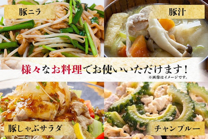 養豚事業では原種豚農場から繁殖農場、肥育農場までの独自の一貫生産を行っており、 オールイン・オールアウトによる疾病対策、県内初の3サイト方式(繁殖・子豚・肥育)を導入しています。 自社独自の配合比率で天然ハーブ(オレガノ)抽出物を加えた飼料で肥育。 また、自社工場では徹底した衛生管理の下、食肉加工のプロが様々な企画に対応し、安心・安全な沖縄県産豚肉を供給しています。 ■生産者の声 ※スリーサイト方式とは 豚の成長段階に応じて、豚舎を「繁殖」「子豚」「肥育」の三つに分散させ、疾病感染リスクを防ぐ頃ができる生産システムです。 ■注意事項/その他 ※画像はイメージです。 ※冷凍便にてお届けいたします。製品到着後速やかに冷凍保存してください。 ※お届け直後は特に美味しく味わっていただけますので、お早めにお召し上がりいただくことをおすすめします。 ※真空パックのまま自然解凍後、そのままお召し上がりいただけます。 ※解凍後はなるべくお早めにお召し上がりください。