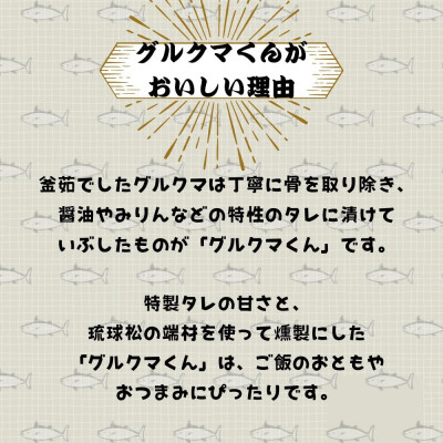 | 容量 | ■お礼品の内容について ・味付なまり節グルクマくん[100g×2個] 原産地:沖縄県国頭村/製造地:沖縄県国頭村 ■原材料:お礼品に記載 ※アレルギー物質などの表示につきましては、お礼品に記載しています。 ■生産者の声 グルクマはこれまで未利用魚(みりようぎょ)として扱われ、ほとんど流通されてきませんでした。 しかしながら、SIS(シャーベットアイス)製氷を導入することにより、これまで以上の鮮度維持管理が実現し、 本土出荷はもちろんのこと海外(タイやシンガポール)への鮮魚出荷も可能となりました。 また、群れを成すその習性から「銀色のカーテン」として人気が上がり、関東エリアや大阪、四国の水族館への観賞展示用としての活魚出荷も増えています。 漁獲から出荷まで 丁寧な下処理・加工の安全品質。 「グルクマくん」は、漁獲から、加工、出荷に至るまで、熟練のスタッフが一匹一匹丁寧に下処理し加工しています。 手間を惜しまず、徹底した鮮度維持管理を行い、ひとつひとつ手作りで丁寧に仕上げた唯一無二のなまり節。 その想いと共に皆様の食卓にお届けできれば幸いです。 |