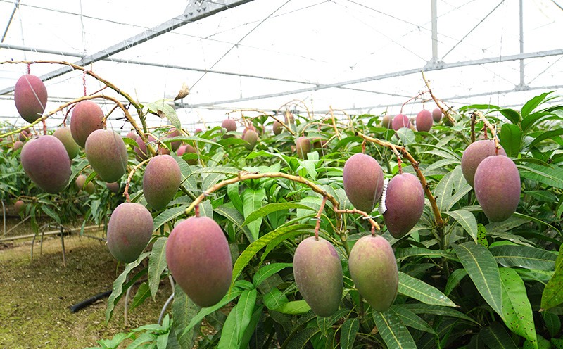 沖縄本島北部に位置する東村のマンゴーハウスで、太陽の光をたっぷり浴びて育った完熟マンゴー!
