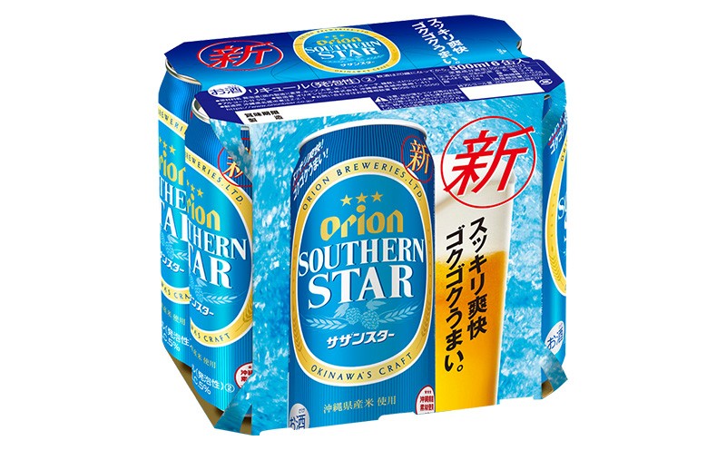 沖縄県産米を使用し飲みやすさ抜群の「サザンスター」は、新たに清涼ホップを一部使用することで、爽快感にさらに磨きをかけました。 また、パッケージもスッキリ・爽快感のイメージを強化したデザインに一新。 お風呂上がりなど毎日の一杯や、ビーチパーティなどアウトドアでの一杯に、スッキリ爽快なのどごしが喉の渇きを潤します。