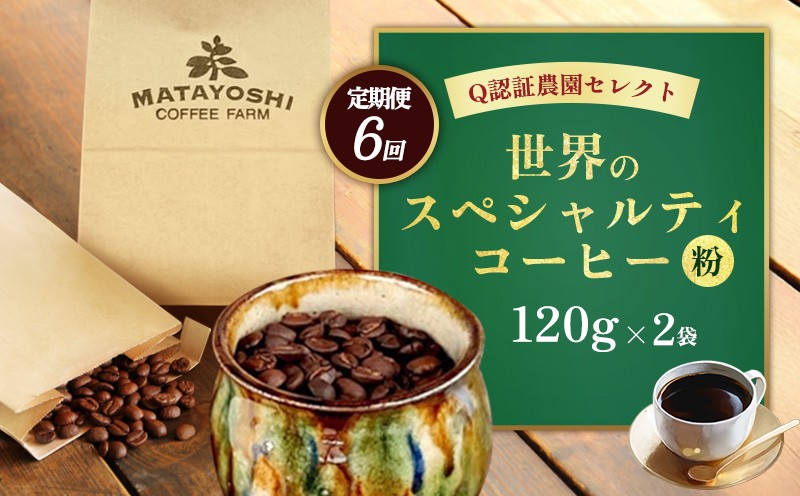 【定期便:6回】又吉コーヒー園セレクト【世界のスペシャルティコーヒー】(粉・中挽き)120g×2袋 スペシャルティ スペシャリティ コーヒー 高品質 自家焙煎 厳選 豆 粉 希少 焙煎 上級 最高級 珈琲 coffee 香り 風味 品質管理 品質基準 沖縄 東村