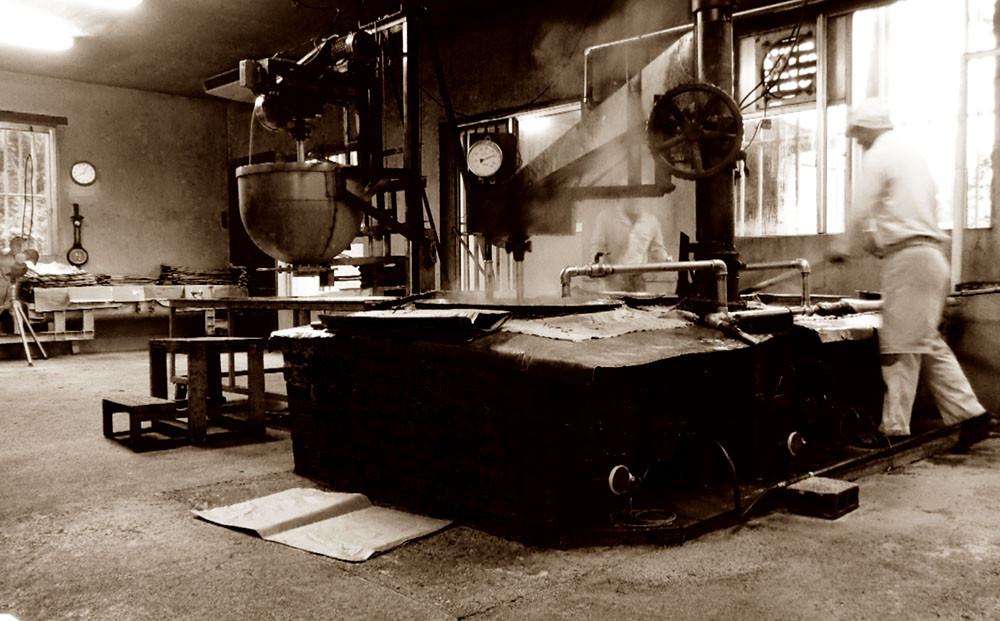 先代の意思を受け継ぎ昔ながらの製法で、レンガ造りの釜を用いて直火で炊き上げ、ひとつずつ、ていねいにおいしい黒糖、加工黒糖をつくっています。