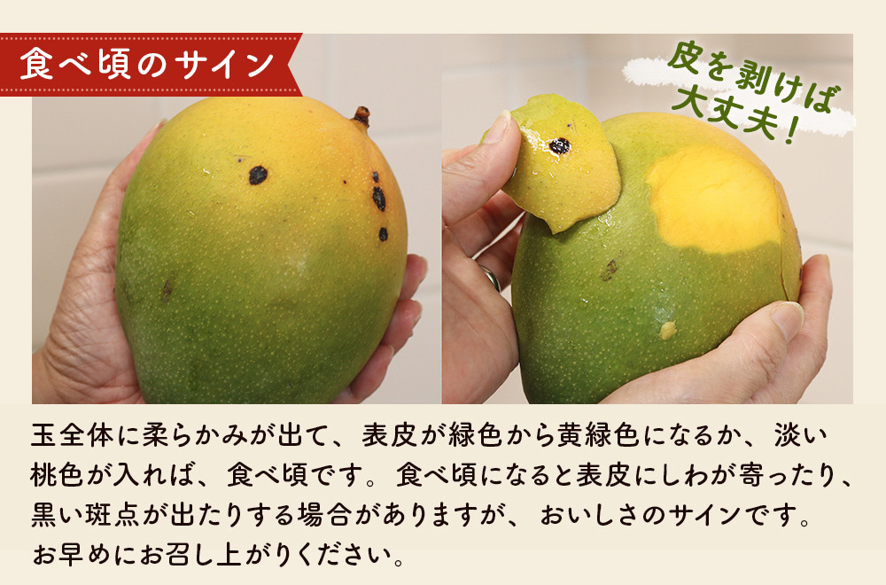 | 消費期限 | ★★品質保証期間★★ お届け日を含む2日間 食べごろのマンゴーをお届けします。 冷蔵保存の上、できるだけお早めにお召し上がりください。 ★★注意事項★★ 【不在】や【受け取り後の保存方法】が原因で不具合が生じた場合は、代品の対応ができかねますのでご注意ください。 食べごろのマンゴーをお届けします。 冷蔵保存の上、できるだけお早めにお召し上がりください。 |