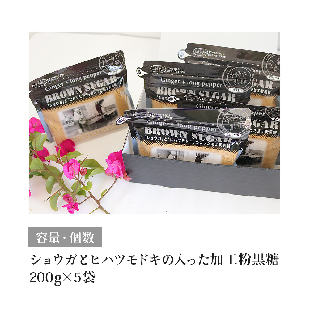 からだぽかぽか ホットミルクに入れるのもおススメ! ショウガとヒハツモドキの入った加工粉黒糖200g×5袋
