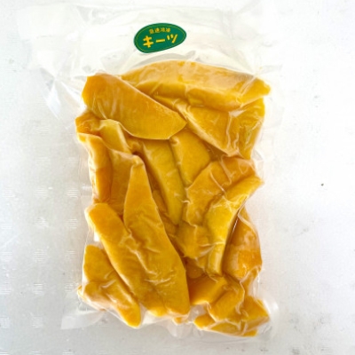 沖縄県産キーツマンゴーが1年中楽しめる冷凍パックで、容量は「1.2kgで使いやすい400g×3パック」です。