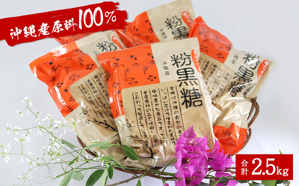 沖縄産原料100% 沖縄産原料100% サトウキビ由来のおいしい粉黒糖 500g×5袋