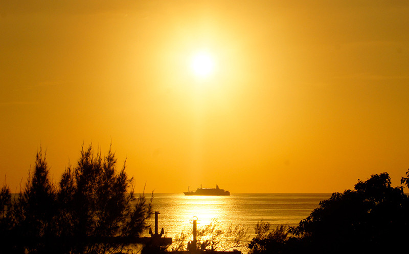 窓の外は、どこまでも続く真っ青な東シナ海。