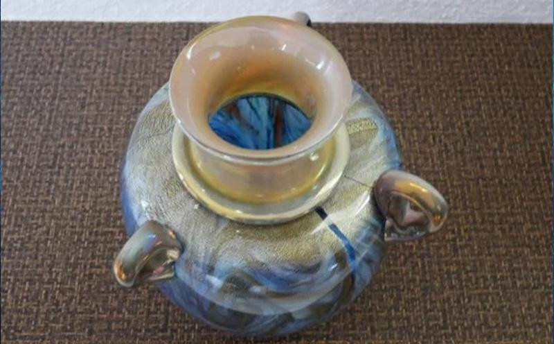 チョイス限定 チョイスPayポイントと交換できる品 琉球ガラス【沖縄県工芸士・松田英吉作】金箔渦彩色(耳付き)壺:水色