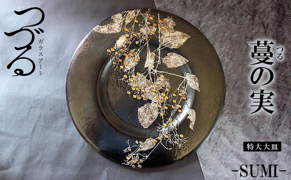 チョイスPayポイントと交換できる品 蔓植物をガラスに焼き付けた一点もの大皿 皿 つづるガラスアート 蔓(つる)の実 -SUMI- 吉田栄美子 | 特大大皿 × 1枚