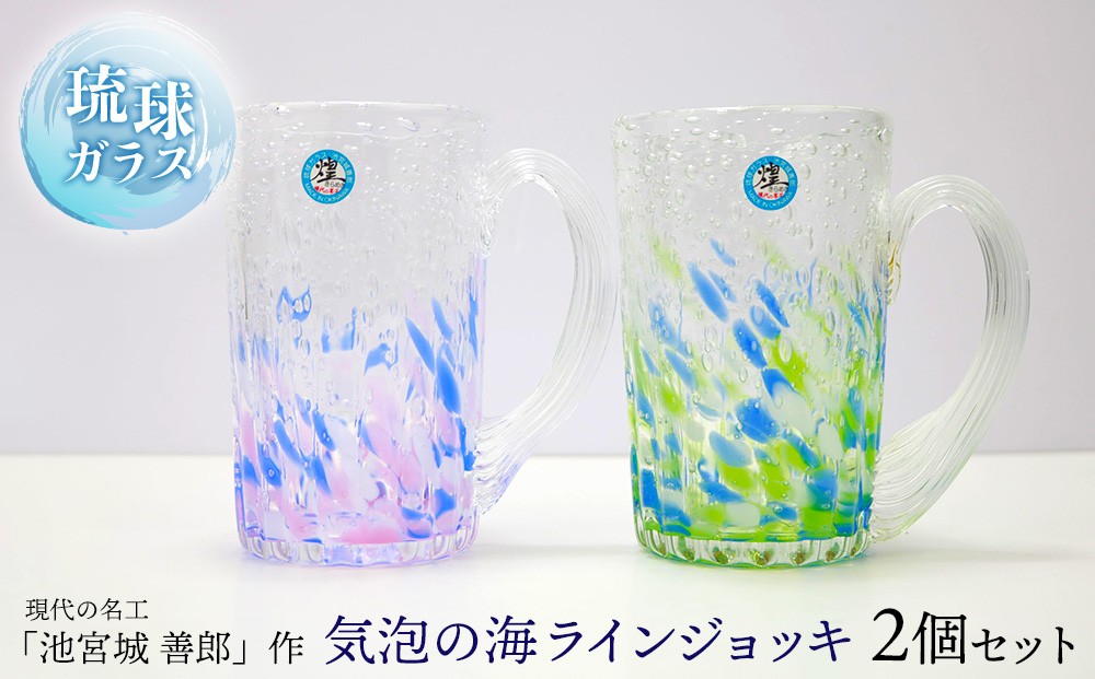 チョイスPayポイントと交換できる品 現代の名工「池宮城 善郎」作 気泡の海ラインジョッキ(青緑・青ピンク)2個ペア