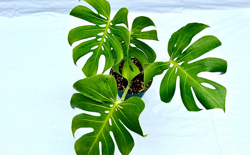 南国の沖縄県からお届けします。観葉植物の定番モンステラのコンパクトな葉っぱ観葉植物です。