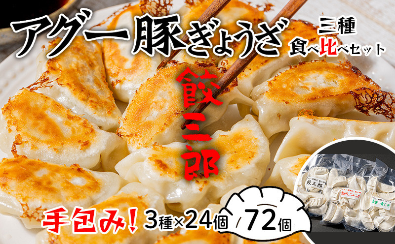 手包み!アグー豚餃子 餃三郎 三種食べ比べセット 各24個 3種72個