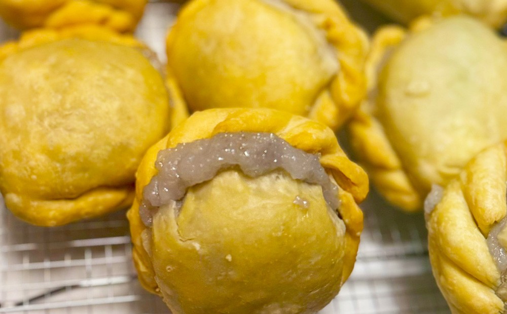 そのあと、トースターで表面がサクッとなるまで加熱すると、生地はサクサク・餡はトロッとした田芋パイ独特のおいしさが味わえます。