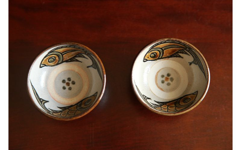 【陶芸工房ふじ】3寸鉢(魚紋)重ね焼き2枚セット