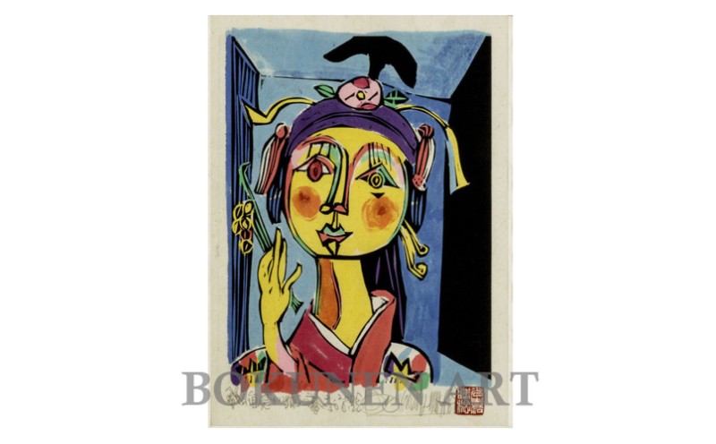 彩色までも版によって行う浮世絵とは違い、ボクネンの手で1点ずつ着色が行われます。そのため、同じ絵柄を何枚も作成できる版画ではあっても、全く同じ色合いの作品はありません。また、和紙の繊維の間から滲み出した色は、表面から直に着色するよりも自然な味わいがあります。