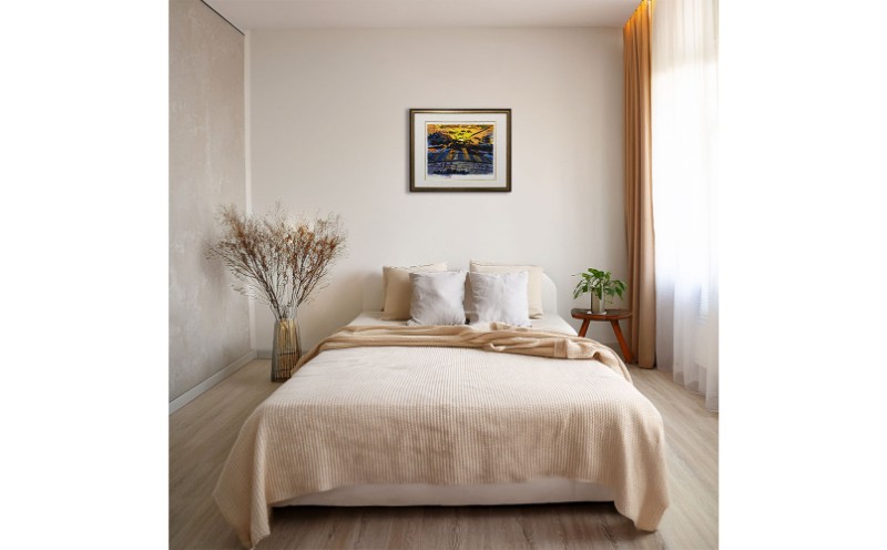 名嘉睦稔のオリジナル裏手彩色木版画作品「焼空」をお届けします。一点ずつ作家が着色した部数限定作品の中から1枚をお届けします。