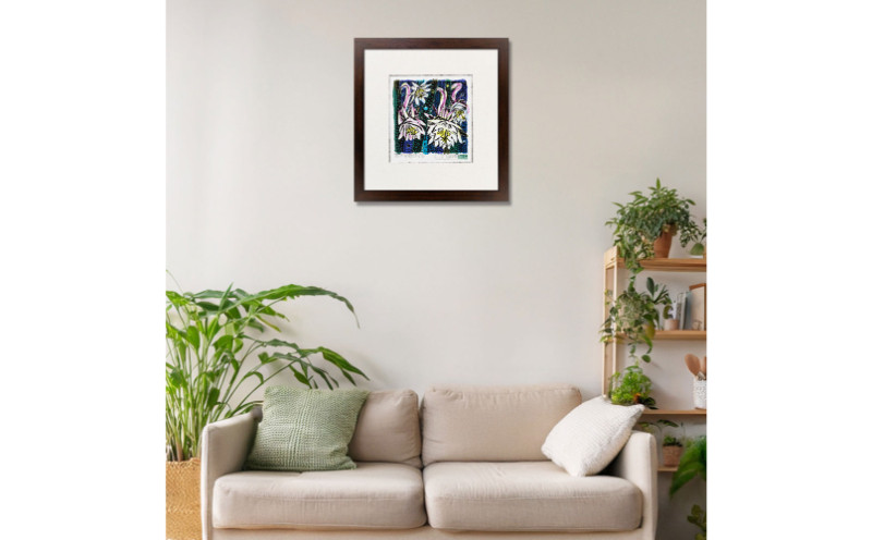 【名嘉 睦稔】木版画作品『月下美人』 〇 インテリア ボクネン 沖縄 読谷村 アート