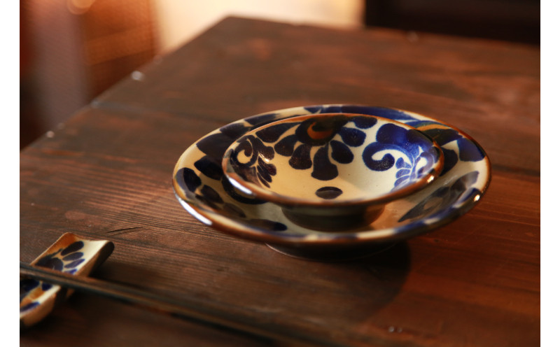【仲間陶房】食卓セット『唐草染付』 〇 沖縄県 読谷村 伝統工芸品 おしゃれ 食卓 陶器 贈り物 仲間功 お皿 お茶碗 箸置き セット 生活