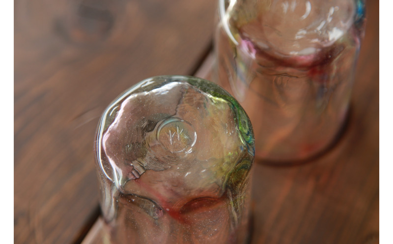 【琉球ガラス工房 硝子家すずめ】オーロラ・ロック<ペア> 〇 グラス ロックグラス 虹色 伝統工芸品 綺麗 ふわふわ インテリア セット プレゼント 贈り物 雑貨 普段使い 沖縄 読谷村