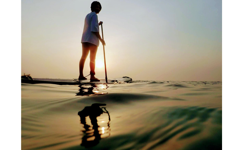 全長3メートルほどの大きなSUPボードの上から見下ろす水中の景色や、東シナ海に沈む迫力満点の夕日はため息が出るほど美しい!!