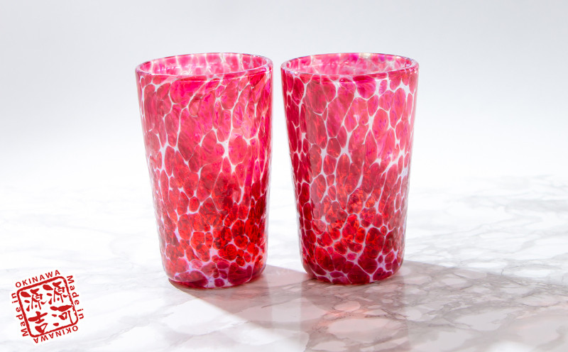 【琉球ガラス】源河源吉 海の雫 ワインレッド(ビア2個セット)