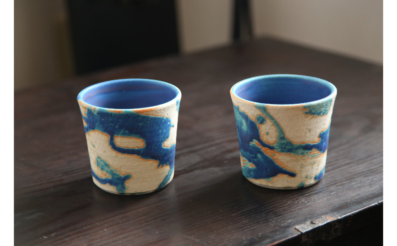 沖縄の海を連想させる鮮やかな青の掛け流しが有名な夏至南風(カーチベー)シリーズからロックカップ2個のセット。飲み物だけでなく、小鉢にもおススメ。