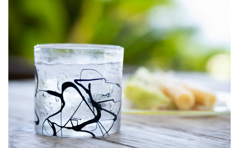 島々を取り巻く防波堤として陸地を守るだけでなく、多くの生き物の棲みかにもなっているサンゴ礁をイメージして作られた琉球ガラスのロックグラス。
