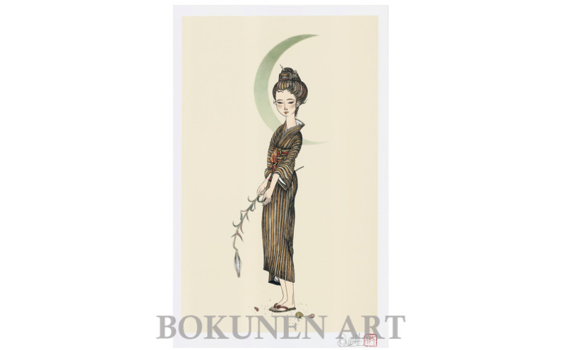 名嘉睦稔のオリジナル裏手彩色木版画作品「月下美人」をお届けします。一点ずつ作家が着色した部数限定作品の中から1枚をお届けします。