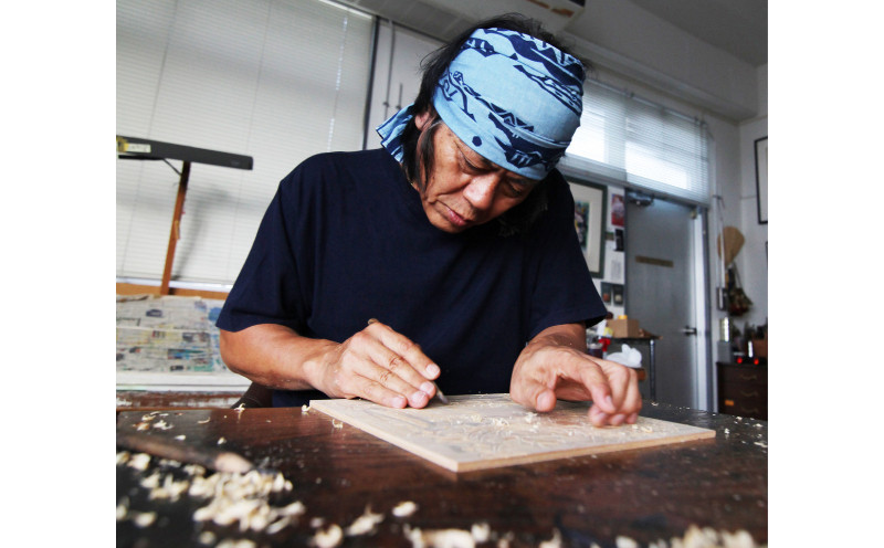 【名嘉 睦稔】木版画作品『絵描者』 アート インテリア ボクネ…
