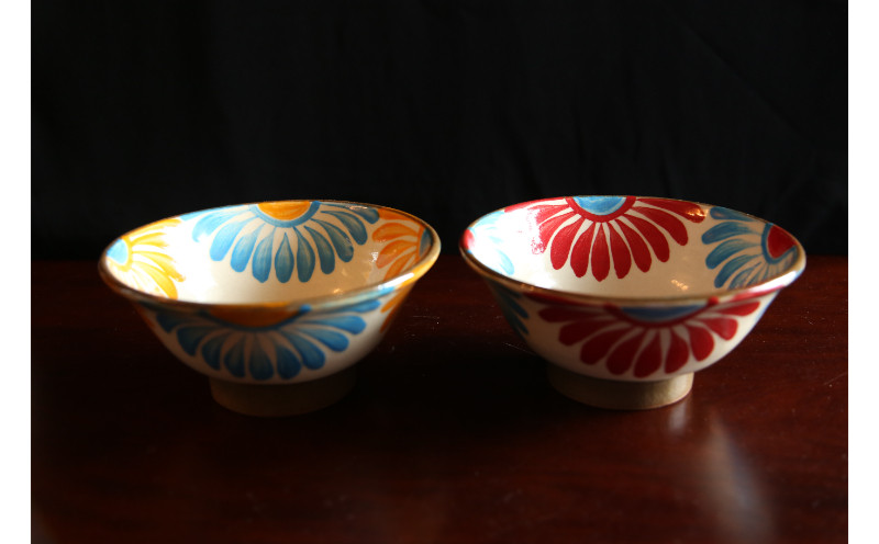 【陶芸工房ふじ】3.5寸マカイ<1枚焼き>菊模様赤青2枚セット …