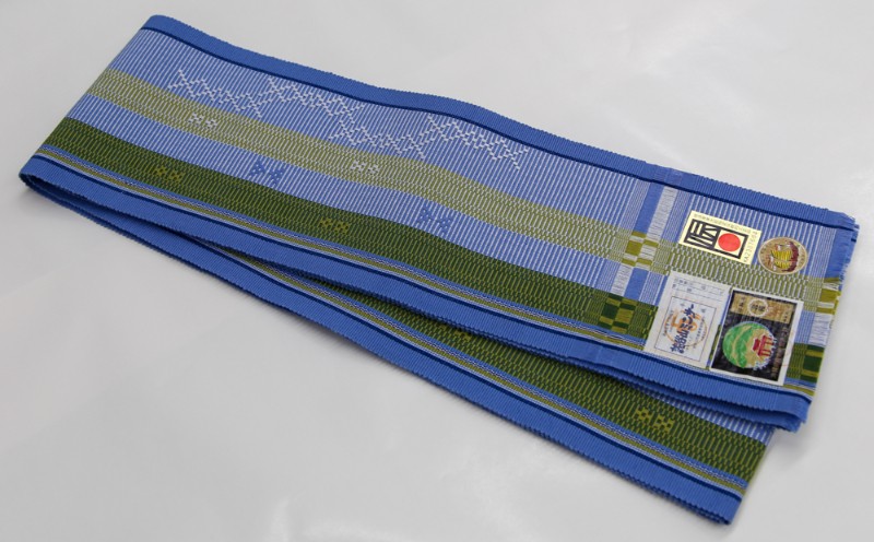 チョイス限定 伝統工芸【読谷山ミンサー】半幅帯(水色系・1点もの)