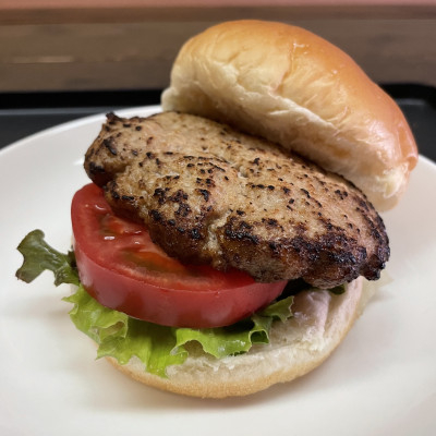 バンズにレタス、トマトをはさみタルタルソースをかけハンバーグにしても美味しくお召し上がりできます。