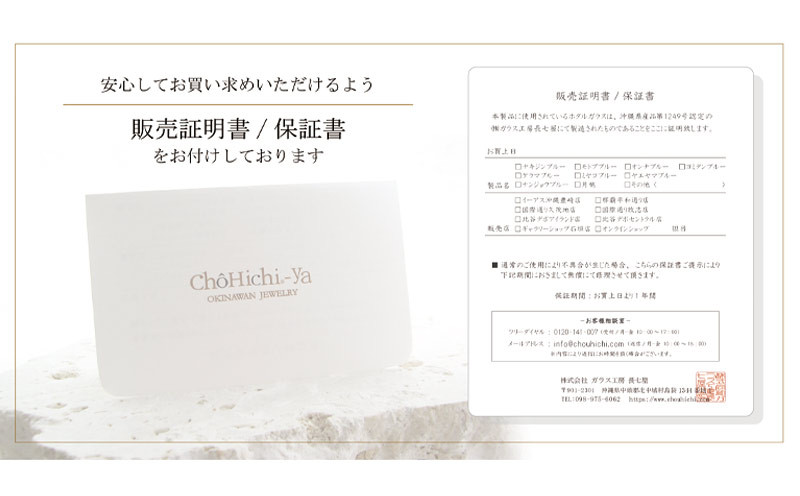県産品マーク1249号を取得した長七屋のホタルガラス。 海以外のテーマで作られた唯一の商品「Gettou」。沖縄に恋する人の宝物になる、アクセサリー&ジュエリーです。