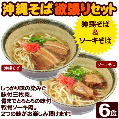 沖縄そば と ソーキそば の 欲張り6人前セット (三枚肉・軟骨ソーキ付き)【1510298】