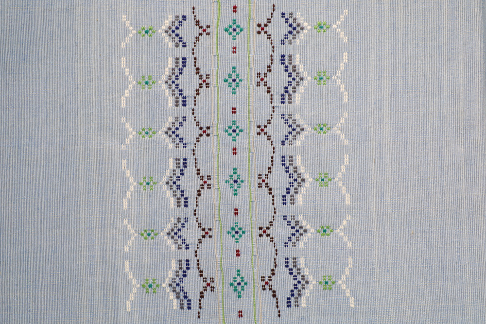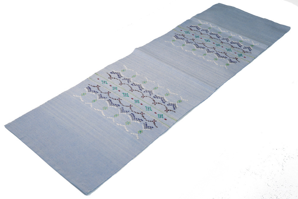 大城廣四郎織物工房の代表大城一夫氏は、沖縄県初の親子2代にわたる現代の名工として活躍しています。今回出品する商品は厳選された南風原花織の手織の絹100%で草木染で織られているテーブルセンターです。