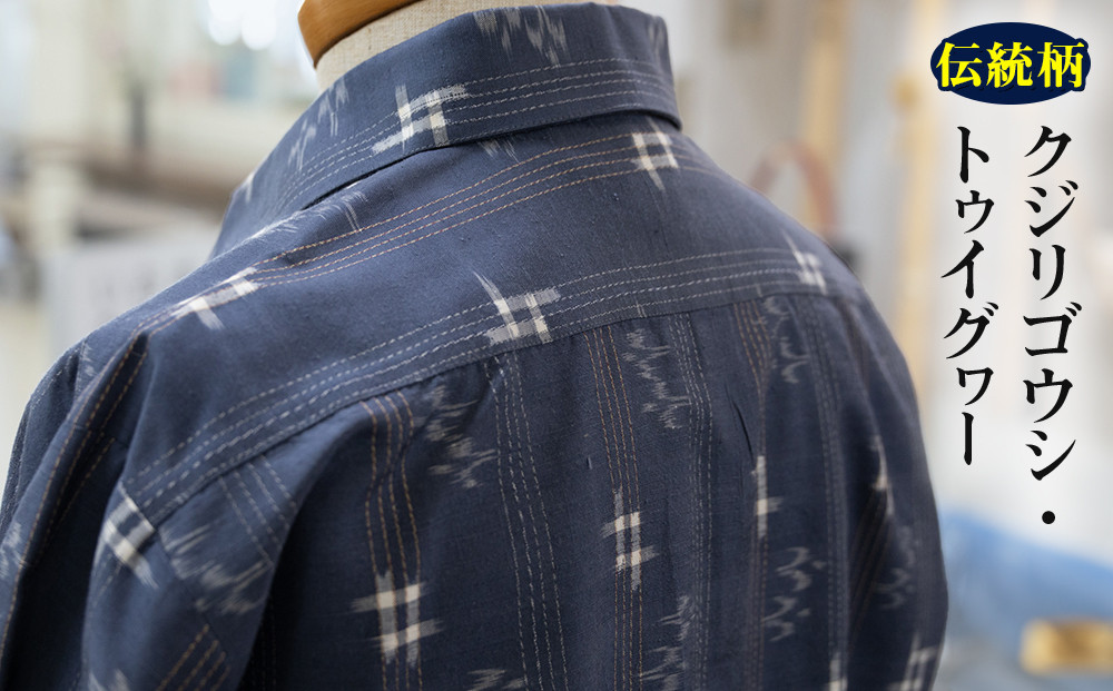 チョイス限定 【琉球絣】かりゆしウェア クジリゴウシ・トゥイグヮー入 総柄 長袖 Mサイズ
