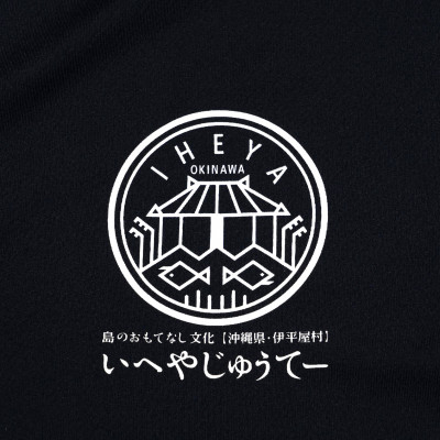 伊平屋島に昔から伝わるおもてなし文化いへやじゅうてー小さな島にある限られた大切な資源はみんなで分かち合う、その想いは特産品にも込められています。このマークは沖縄の原風景が残る伊平屋村を象徴する赤瓦家/稲穂/もずく/アーサ/ミーバイ/チヌマンがデザイン されています。