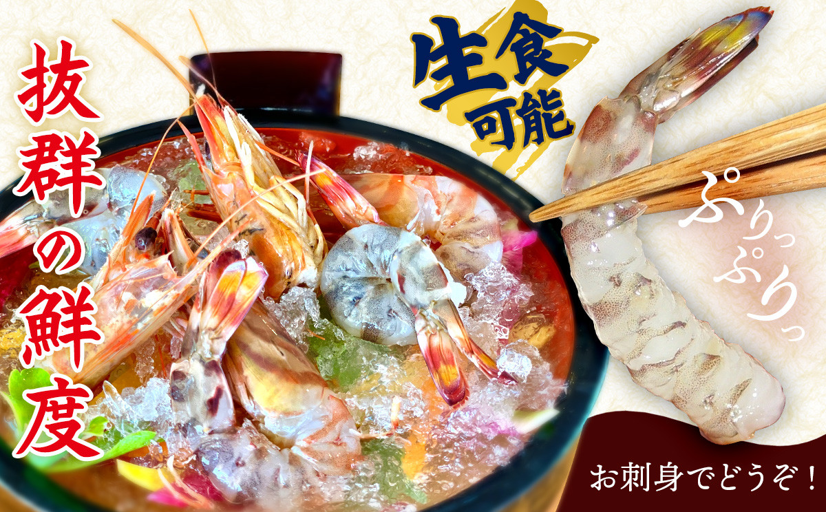 活き〆急速冷凍車海老は、どのサイズも生食(お刺身)が可能です。