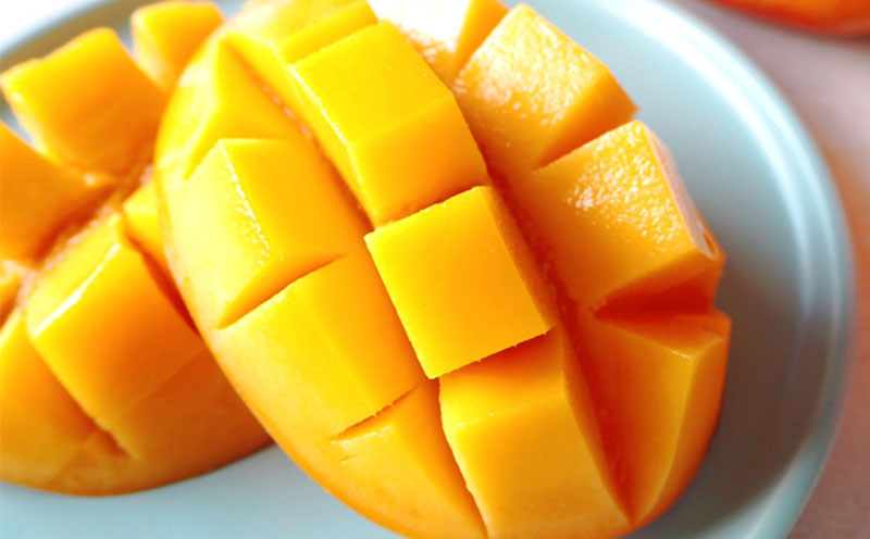 久米島のミネラル溢れる土壌で育てたアップルマンゴー【秀品】を約1kg(2~3玉)お届けします。