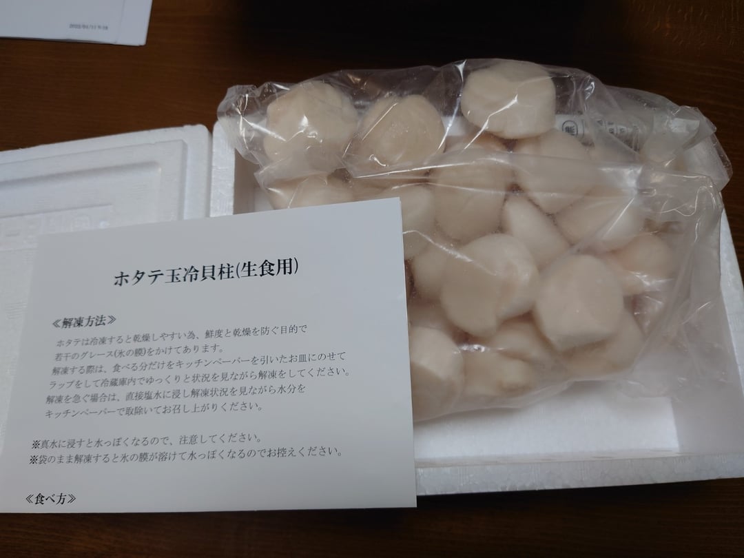 大粒のホタテをゆっくり解凍して家族でとても美味しくいただきました。また、送られてくるのが楽しみです。