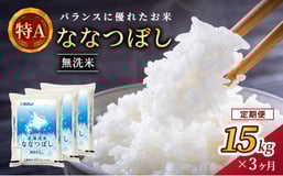 3ヵ月 定期便 (無洗米15kg)ホクレン北海道ななつぼし(無洗米5kg×3袋) 北海道米 お米 白米 ごはん ご飯 ライス 和食 炭水化物 主食 おにぎり お弁当 ほど良い粘り 豊かな甘み つややか 特A [JA新おたる]