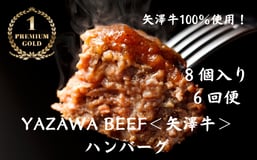 ハンバーグ8個 定期便 6ヶ月 ミート矢澤 YAZAWA BEEF<矢澤牛> 送料無料 6回便 6か月 6ヵ月 和牛 国産 牛 国産牛 お弁当 おかず 矢澤牛 和風 黒毛和牛[282-01]