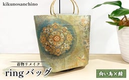 【着物リメイク】 ringバッグ『向い鳥×緑』 | 着物 リメイク バッグ 和柄 鳥 花模様 吉祥模様 グリーンブルー 刺繍 おしゃれ 和風 ハンドバッグ レディース ファッション 帯バッグ リングハンドル 花柄 日本伝統 お取り寄せ 北海道 羽幌町 羽幌【30003】