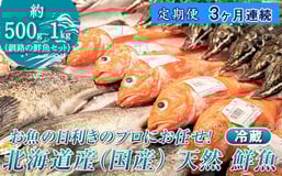 【定期便 3ケ月連続】 お魚の目利きのプロにお任せ!北海道産(国産) 天然 鮮魚 約500g~1kg(釧路の鮮魚セット) 産地直送 冷蔵 冷蔵便 刺身 セット 鮮魚セット 鮮魚ボックス 定期便 魚介類 海鮮 絶品 人気 ヒロセ 北海道 釧路町 釧路超 特産品 br04