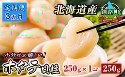【定期便 3か月連続】北海道産 ホタテ貝柱 約250g×1パック | 帆立 ホタテ ほたて 貝柱 冷凍 刺身 刺し身 小分け ホタテ貝柱 刺身 冷凍 セット 産地直送 定期便 魚介類 海鮮 絶品 人気 ヒロセ 北海道 釧路町 釧路超 特産品 br04