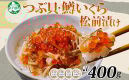 2512. つぶ・鱒いくら松前漬け 100g×4個 海鮮 つぶ貝 ツブ貝 鱒イクラ ますいくら イカ 数の子 貝 海鮮 魚介 漬け物 おかず ご飯のお供 おつまみ 酒の肴 送料無料 北海道 弟子屈町